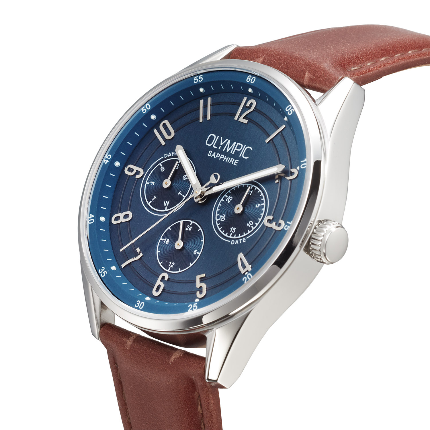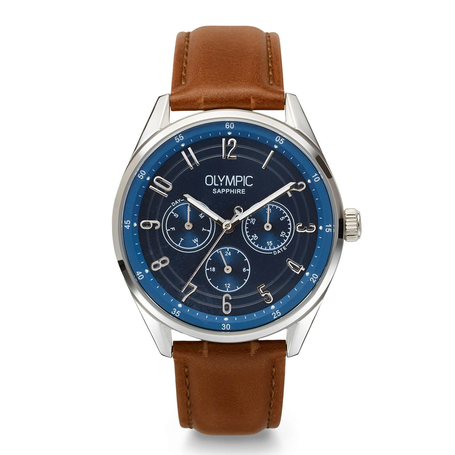 Dit unieke Olympic horloge met artikelnummer: OL90HSL001 is een klassiek herenhorloge. Het horloge heeft een ronde stalen kast met een diameter van 40 mm. De blauwe wijzerplaat met dag- en datumaanduiding en met 24-uursaanduiding zorgt samen met de verzorgde afwerking voor een stijlvolle uitstraling. De bruin leren band draagt comfortabel en maakt het ontwerp helemaal af.