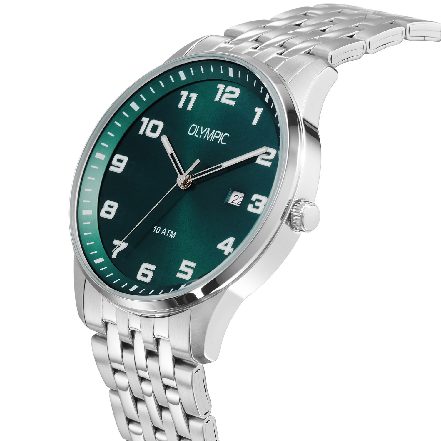 Dit unieke Olympic horloge met artikelnummer: OL26HSS329 is een sportief herenhorloge. Het horloge heeft een ronde stalen kast met een diameter van 42 mm. De groene wijzerplaat met datumaanduiding en met duidelijke cijfers zorgt samen met de verzorgde afwerking voor een stijlvolle uitstraling. De stalen schakelband draagt comfortabel en maakt het ontwerp helemaal af.