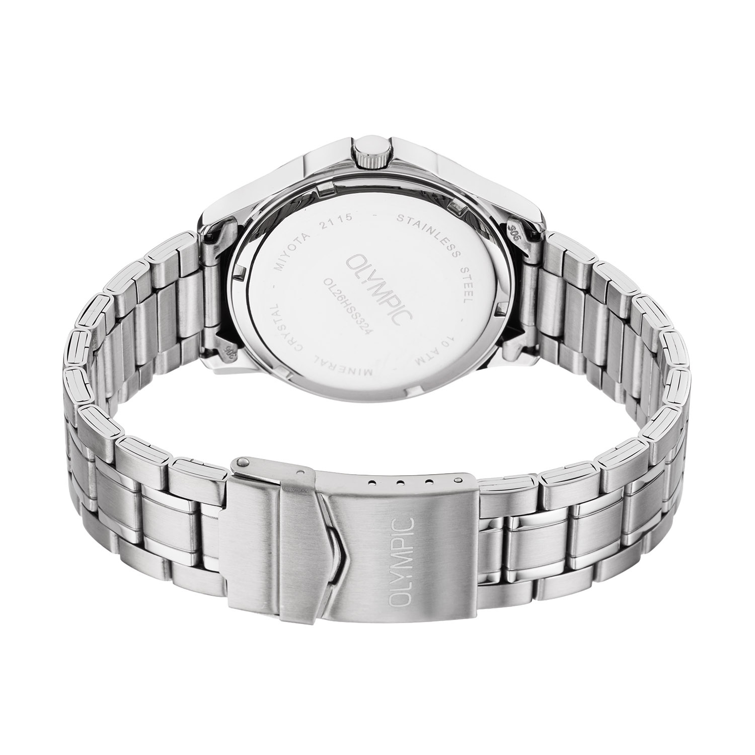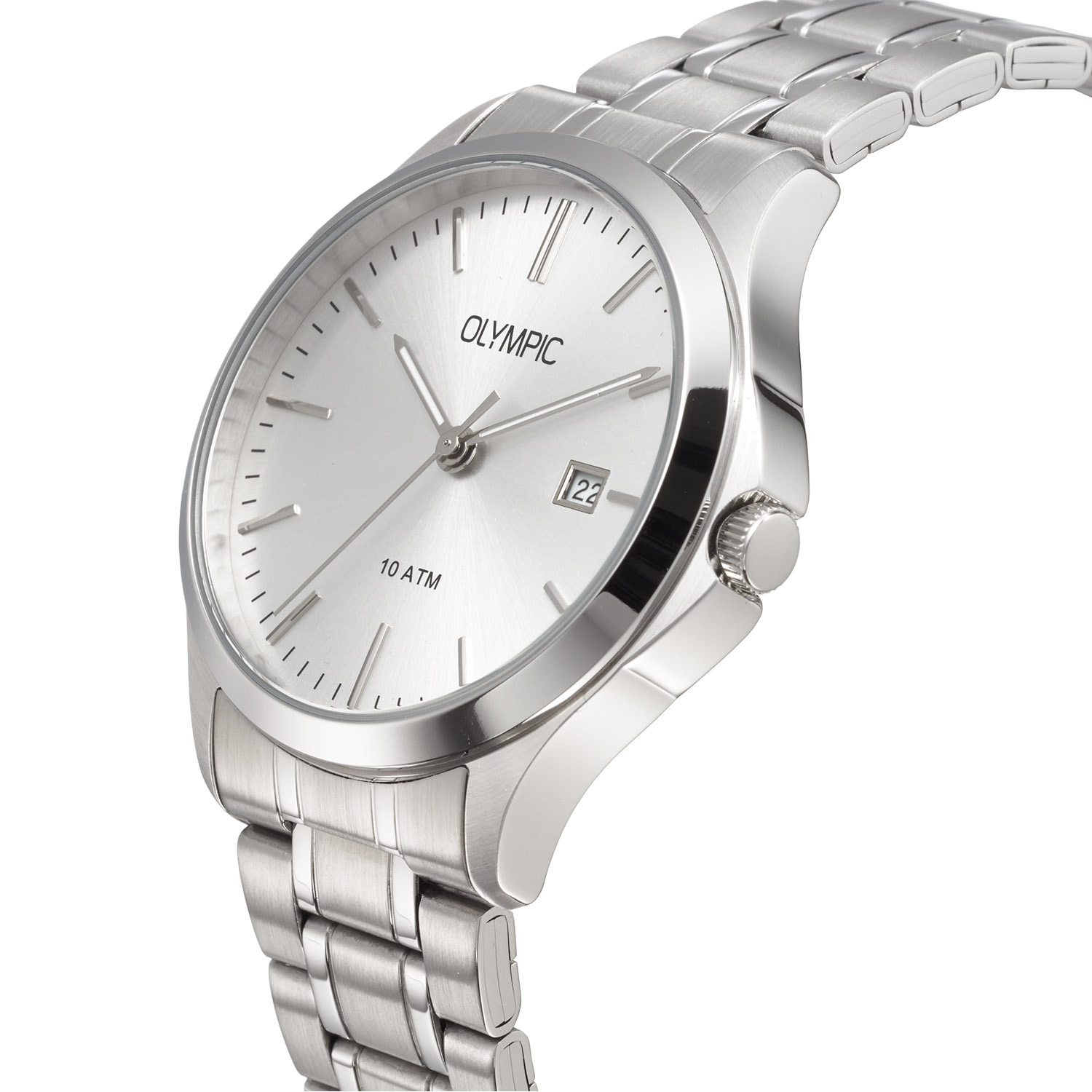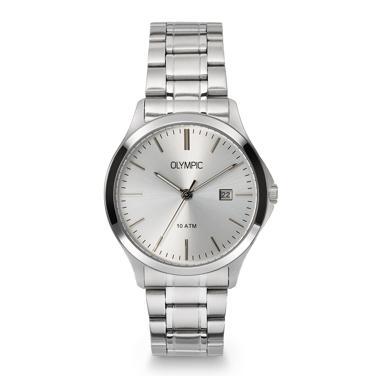 Dit unieke Olympic horloge met artikelnummer: OL26HSS324 is een stijlvol herenhorloge. Het horloge heeft een ronde zilverkleurige stalen kast met een diameter van 39 mm. De zilverkleurige wijzerplaat zorgt samen met een strakke uitstraling en praktische datumweergave voor een verzorgde uitstraling. De stalen schakelband draagt comfortabel en maakt het ontwerp helemaal af.