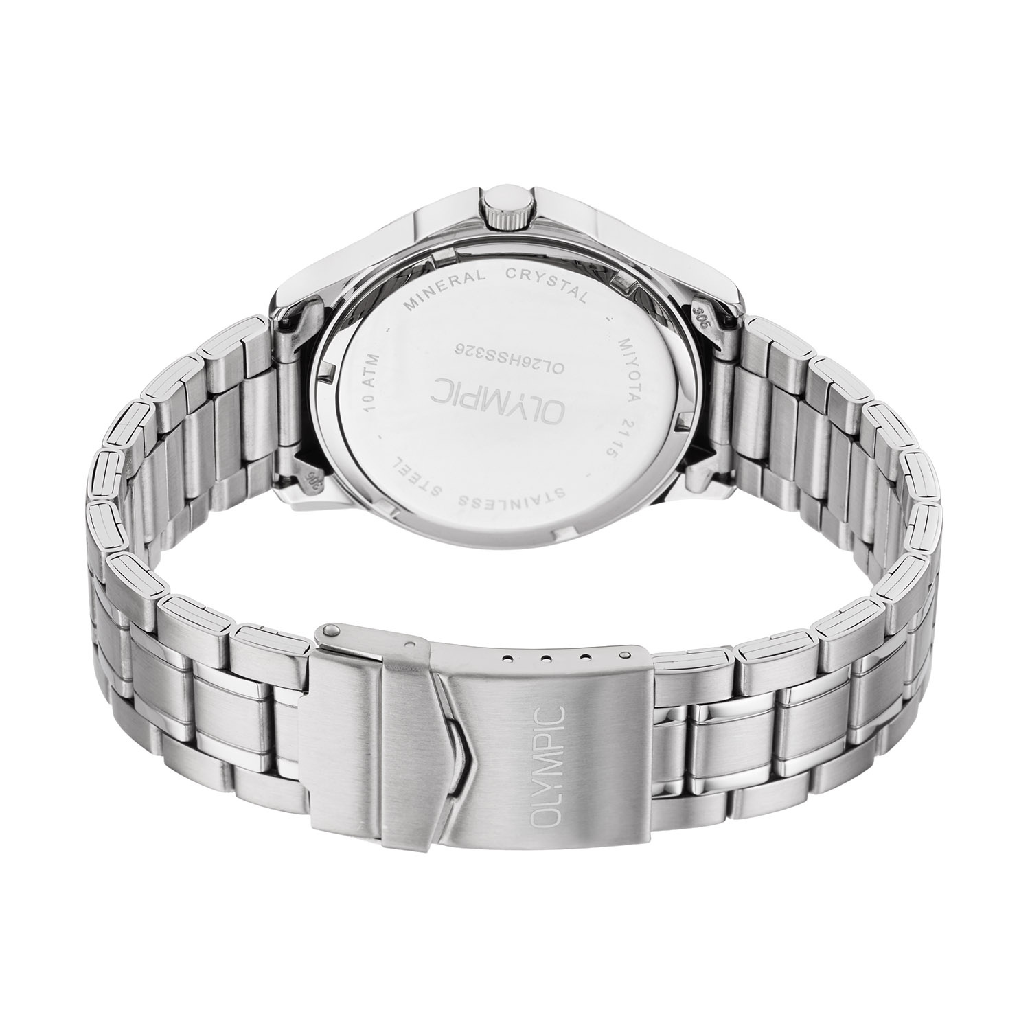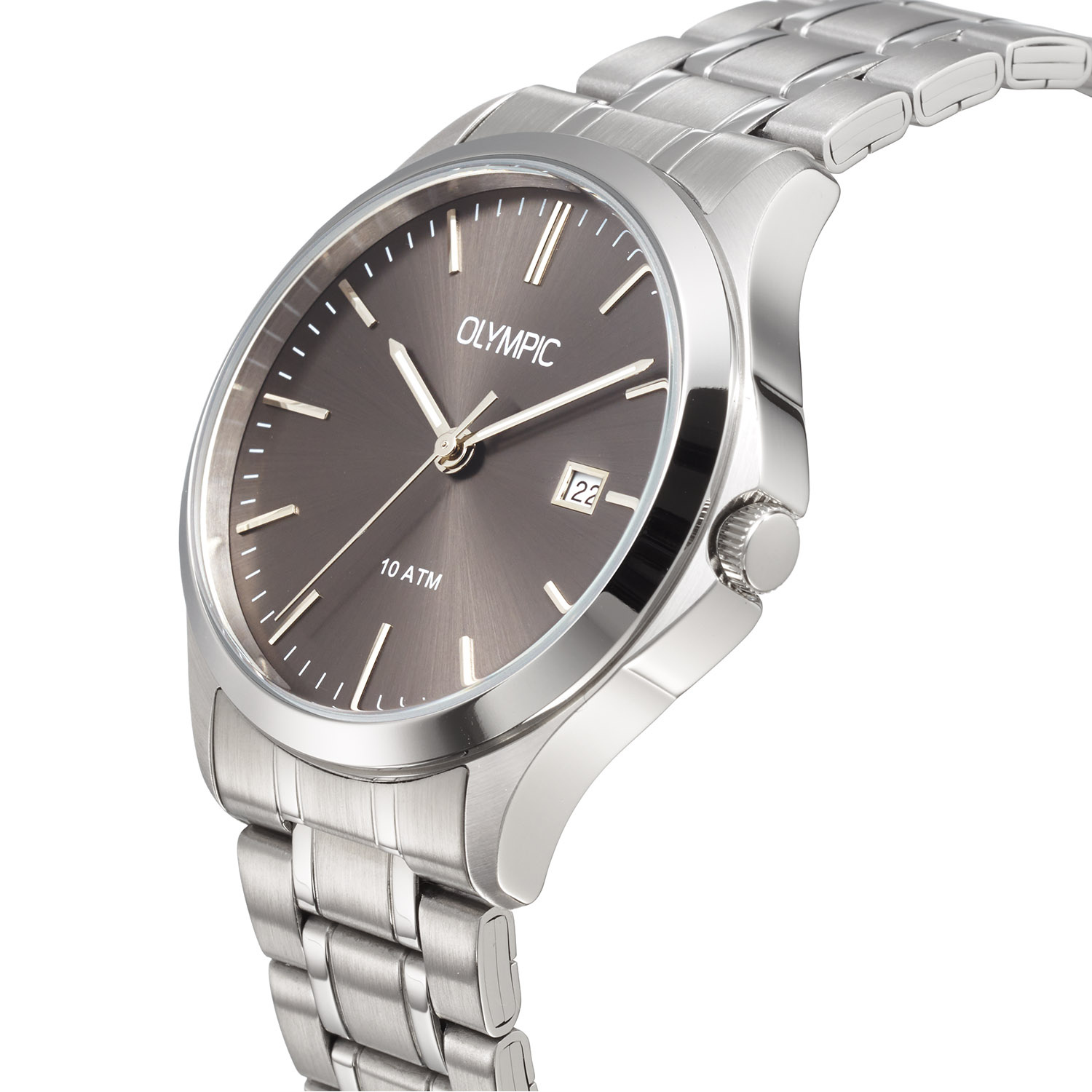Dit unieke Olympic horloge met artikelnummer: OL26HSS326 is een stijlvol herenhorloge. Het horloge heeft een ronde zilverkleurige stalen kast met een diameter van 39 mm. De grijze wijzerplaat zorgt samen met een moderne uitstraling en praktische datumweergave voor een verzorgde uitstraling. De stalen schakelband draagt comfortabel en maakt het ontwerp helemaal af.
