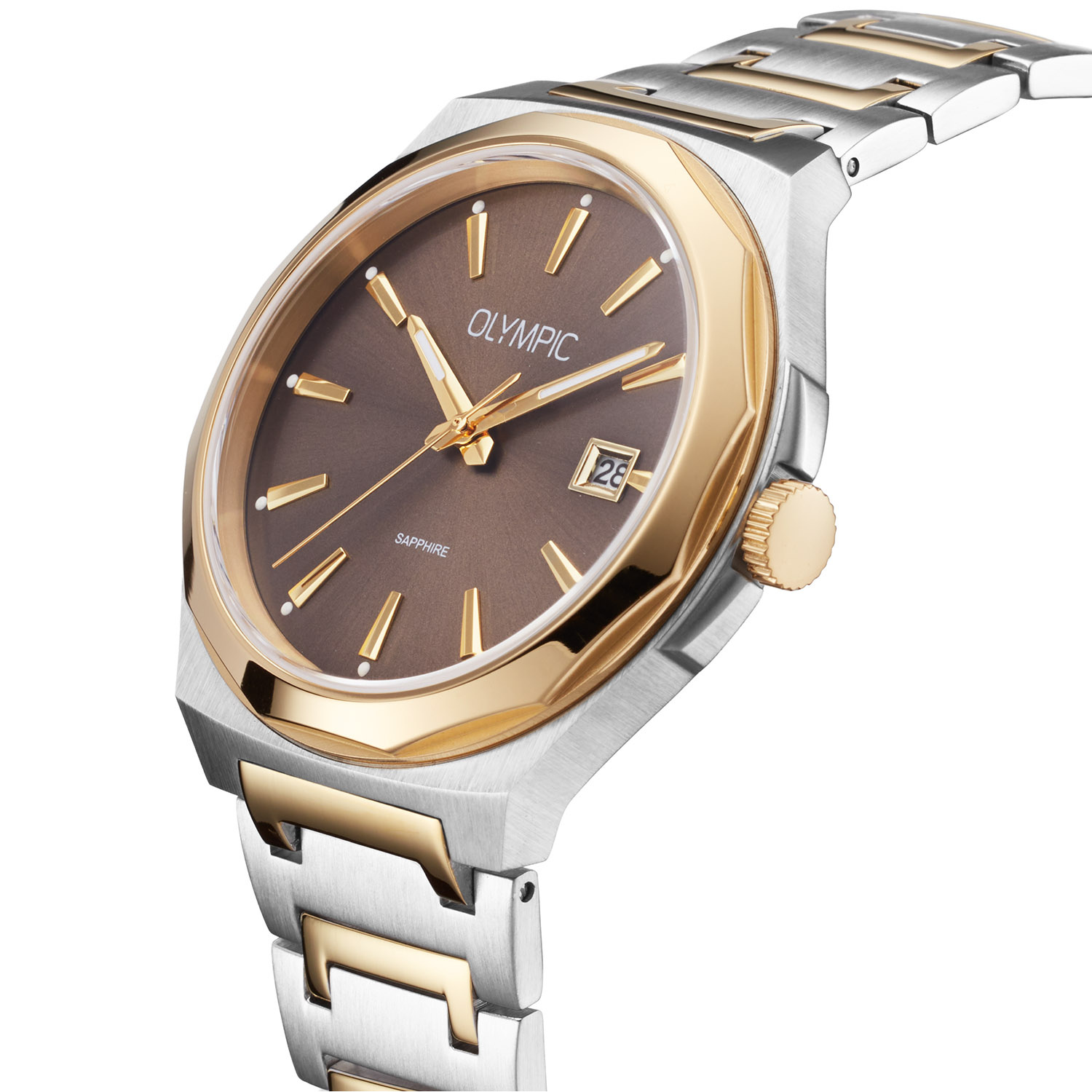 Dit unieke Olympic horloge met artikelnummer: OL66HSS026B is een chique herenhorloge. Het horloge heeft een ronde stalen kast met een diameter van 44 mm. De bruine wijzerplaat met datumaanduiding zorgt samen met de verzorgde afwerking voor een stijlvolle uitstraling. De stalen schakelband draagt comfortabel en maakt het ontwerp helemaal af.