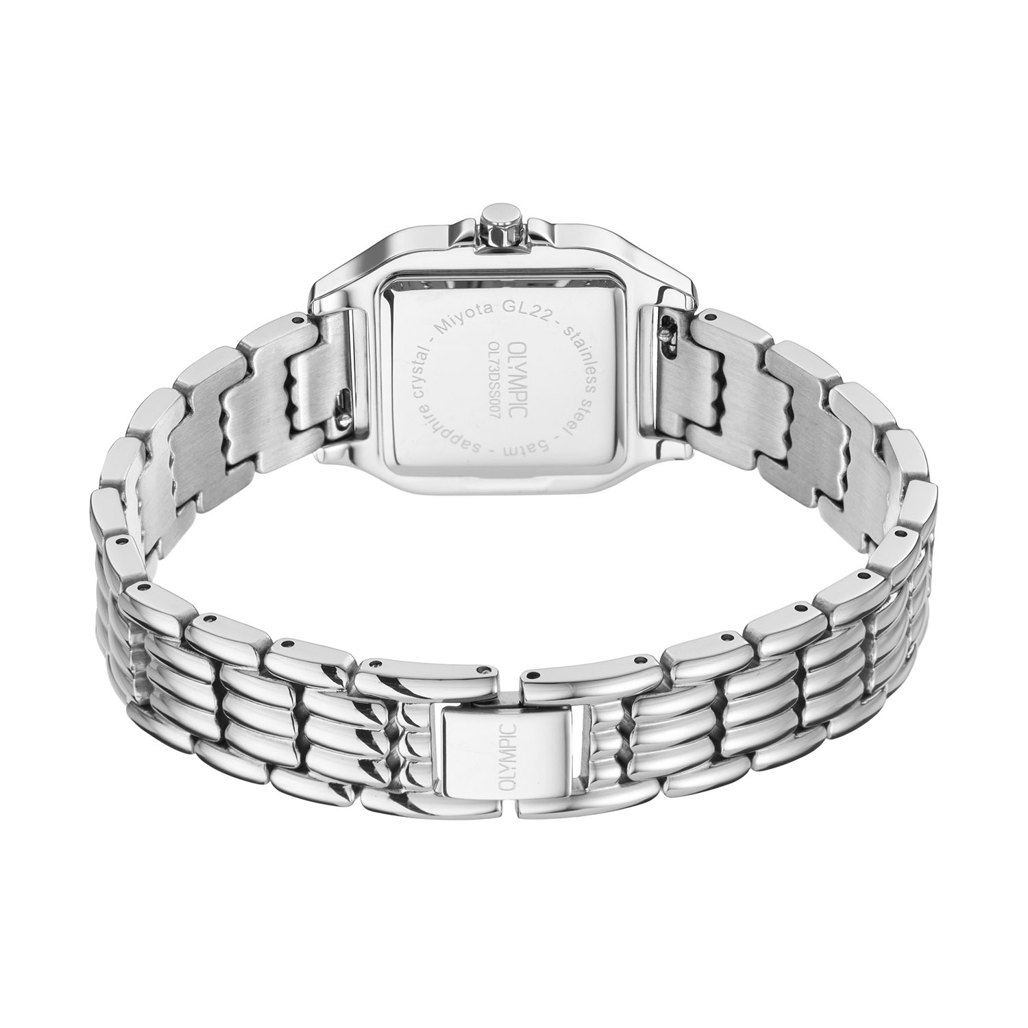 Dit unieke Olympic horloge met artikelnummer: OL73DSS007 is een stijlvol dameshorloge. Het horloge heeft een vierkante zilverkleurige stalen kast met een diameter van 26 mm. De witte wijzerplaat met Romeinse cijfers zorgt samen met een klassieke uitstraling met een moderne twist voor een verzorgde uitstraling. De stalen schakelband draagt comfortabel en maakt het ontwerp helemaal af.