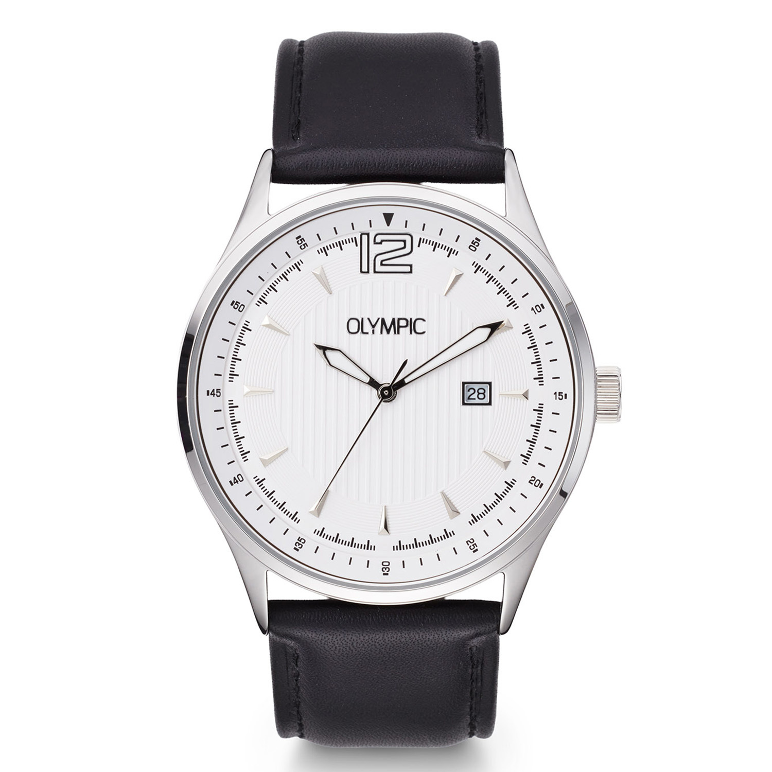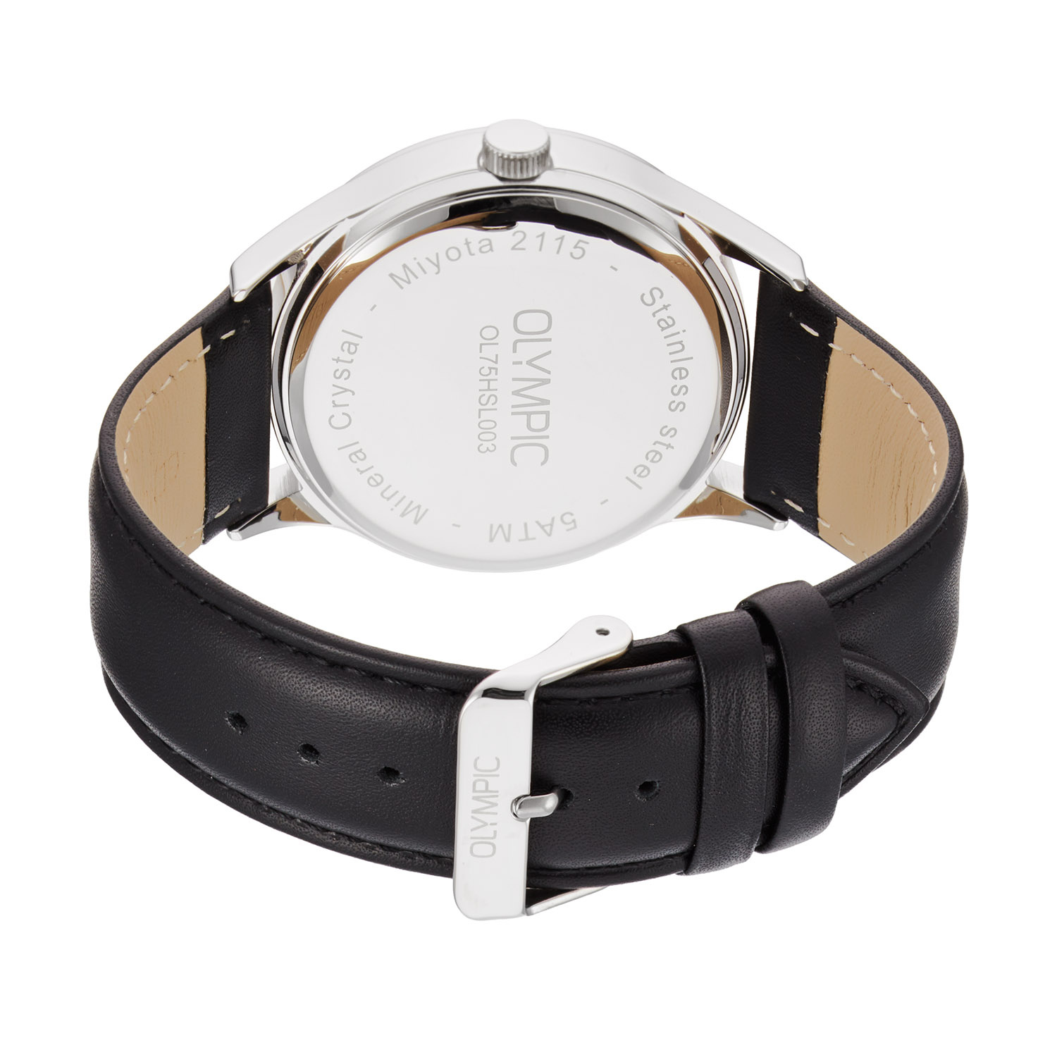 Dit unieke Olympic horloge met artikelnummer: OL75HSL003 is een sportief herenhorloge. Het horloge heeft een ronde stalen kast met een diameter van 43 mm. De grijze wijzerplaat met datumaanduiding zorgt samen met de verzorgde afwerking voor een stijlvolle uitstraling. De zwart leren band draagt comfortabel en maakt het ontwerp helemaal af.
