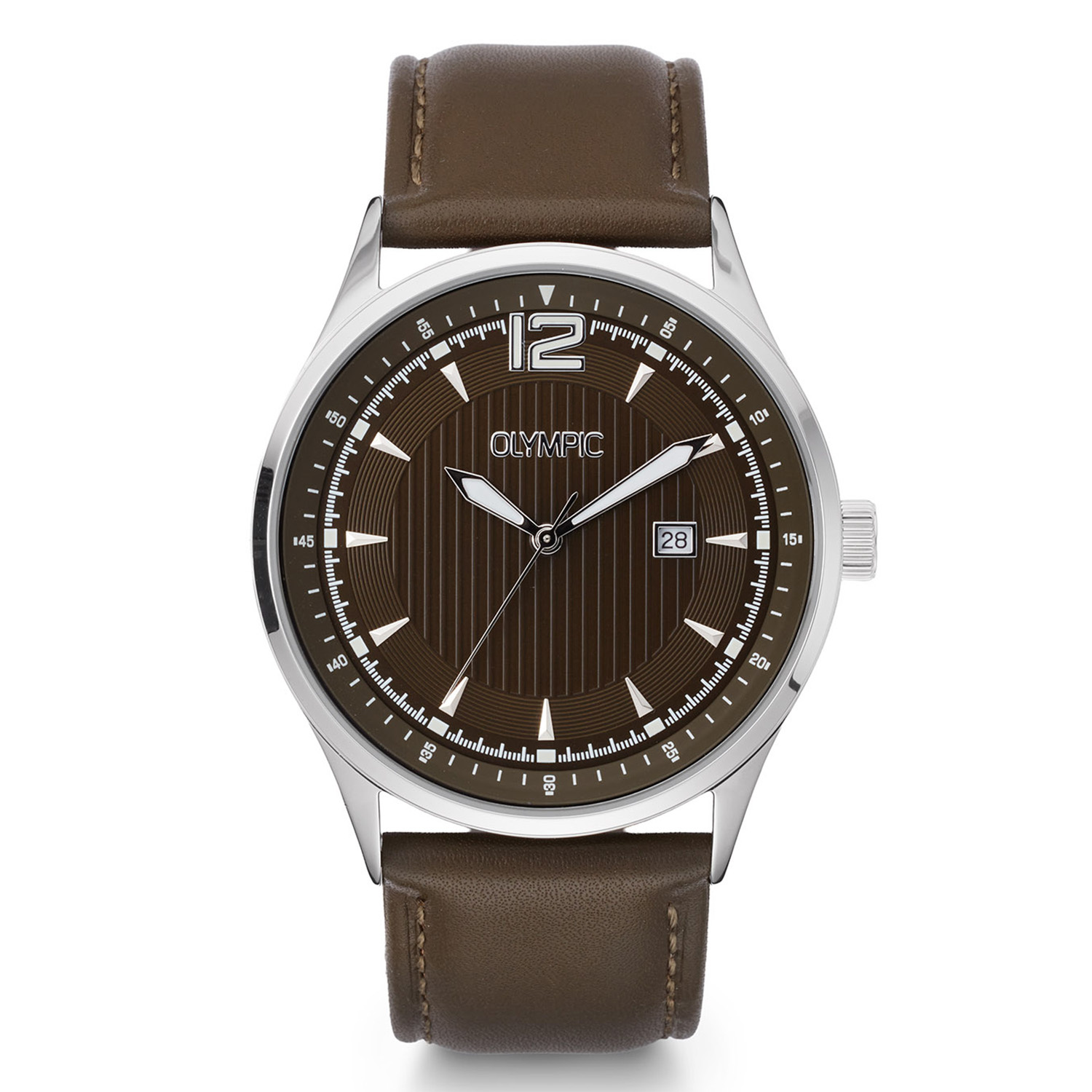 Dit unieke Olympic horloge met artikelnummer: OL75HSL004 is een sportief herenhorloge. Het horloge heeft een ronde stalen kast met een diameter van 43 mm. De bruine wijzerplaat met datumaanduiding zorgt samen met de verzorgde afwerking voor een stijlvolle uitstraling. De bruin leren band draagt comfortabel en maakt het ontwerp helemaal af.