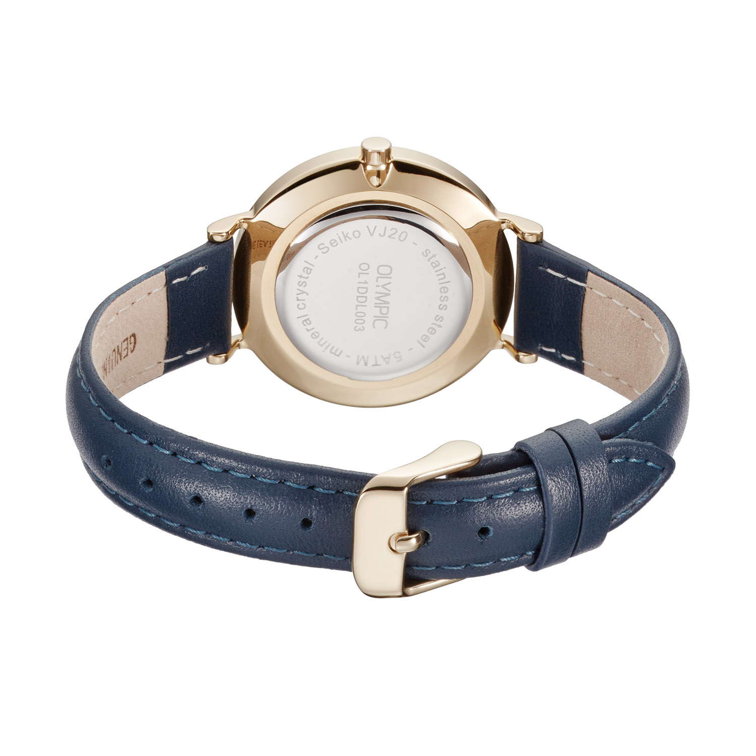 Dit unieke Olympic horloge met artikelnummer: OL1DDL003 is een stijlvol dameshorloge. Het horloge heeft een ronde goudkleurige stalen kast met een diameter van 32 mm. De donkerblauwe wijzerplaat met kristallen details zorgt samen met een stijlvolle combinatie van klassiek en trendy voor een verzorgde uitstraling. De donkerblauwe leren band draagt comfortabel en maakt het ontwerp helemaal af.
