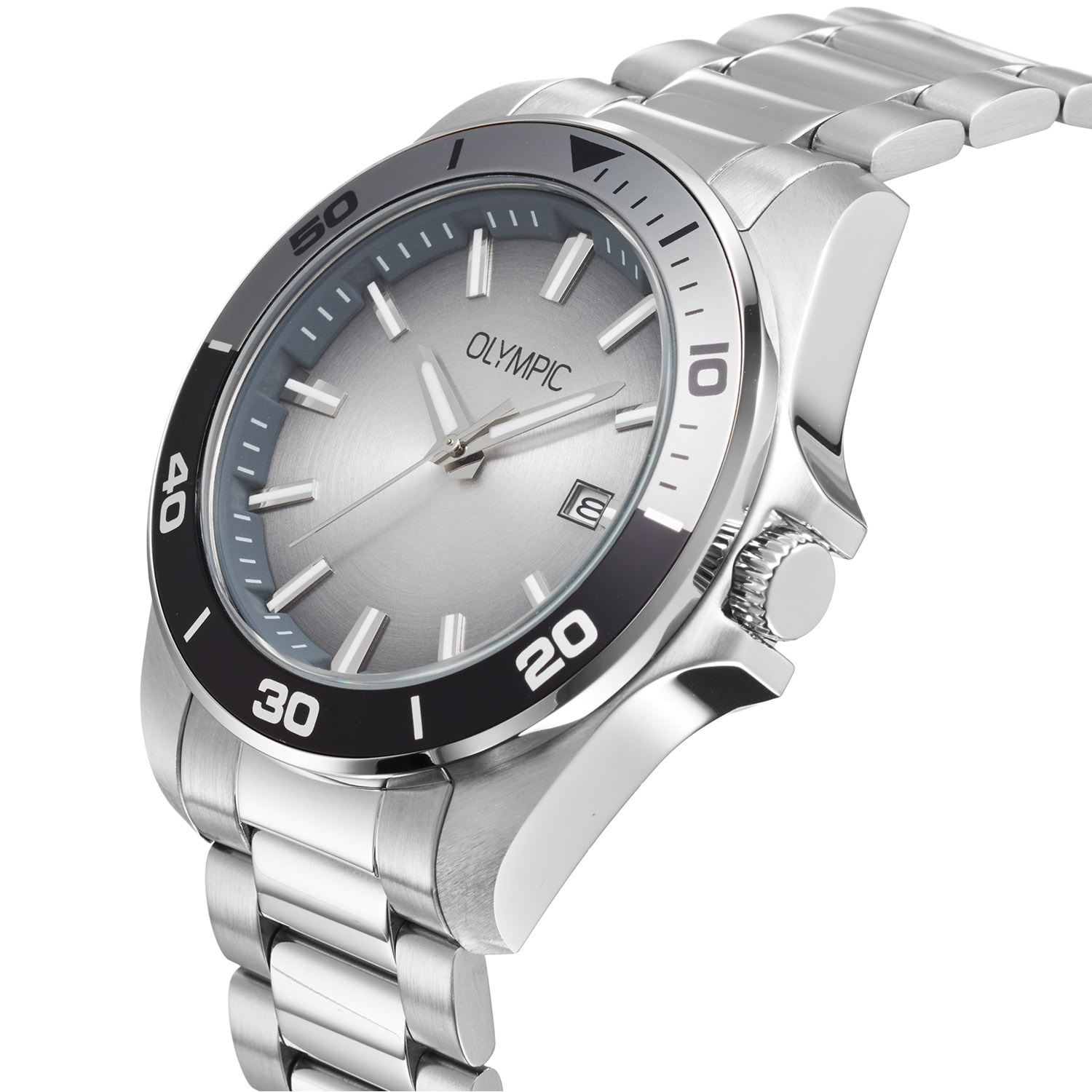 Dit unieke Olympic horloge met artikelnummer: OL90HSS004 is een stoer herenhorloge. Het horloge heeft een ronde stalen kast met een diameter van 40 mm. De grijze wijzerplaat met datumaanduiding zorgt samen met de verzorgde afwerking voor een stijlvolle uitstraling. De stalen schakelband draagt comfortabel en maakt het ontwerp helemaal af.