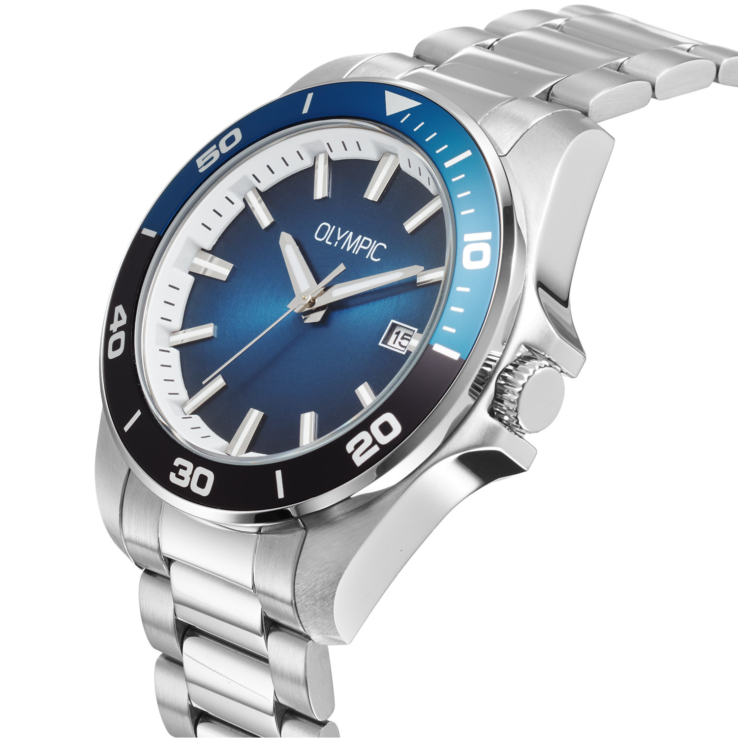 Dit unieke Olympic horloge met artikelnummer: OL90HSS007 is een stoer herenhorloge. Het horloge heeft een ronde stalen kast met een diameter van 40 mm. De blauwe wijzerplaat met datumaanduiding zorgt samen met de verzorgde afwerking voor een stijlvolle uitstraling. De stalen schakelband draagt comfortabel en maakt het ontwerp helemaal af.